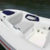 It has a well-equipped head under the console and individual seats for the captain and companion made of carbon fiber with Hinterschaum upholstery (injected seamless foam) that does not soak when wet. Those seats are fitted with an Anti-Shock system that absorbs impacts and assures a comfortable ride.