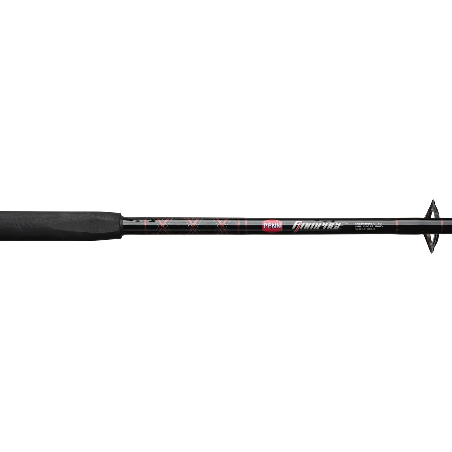 The Rampage™ rod is designed to be a workhorse for charter boats or anglers that need durability in a variety of fishing situations. Constructed with a tubular glass blank for extra strength, the Rampage also features a solid glass tip that helps keep the rod tip from breaking, even when high sticked. A heavy duty Pac- Bay® reel seat ensures a secure lock on the reel foot, eliminating flex while under heavy load. Each rod features guides built with heavy duty stainless steel frames and aluminum oxide inserts that are perfect for both mono and braided lines. The soft yet durable rubber gimbal is used on select models providing the same function as a traditional metal gimbal without the worries of scratching or cracking the gel coat on your boat. Rubber gimbals also help ease the pain that traditional metal gimbals can put on your body while fighting a fish. EVA Torque™ grips are contoured to fit your hand perfectly and eliminate the rod from twisting while under heavy load.