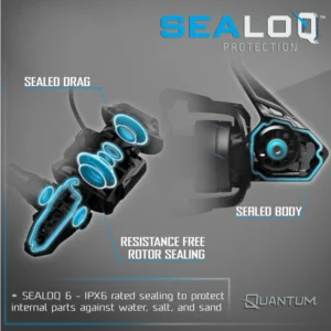 The Quantum® Merit™ Reel redefines affordability and performance, offering premium features typically reserved for higher-priced reels. With Sealoq™ 6 technology, the reel is sealed to IPX6 standards, safeguarding its gear box and drag system against water, salt, and sand. The CFX200™ Carbon Fiber Extreme Drag System ensures best-in-class max drag capability and a smooth, consistent drag curve, providing anglers with outstanding control and power. Constructed with a high-strength graphite body and rotor reinforced by an aluminum sideplate, the Merit reel strikes an ideal balance between durability and lightweight performance. Its 4 sealed stainless steel bearings provide effortless, smooth retrieval in.